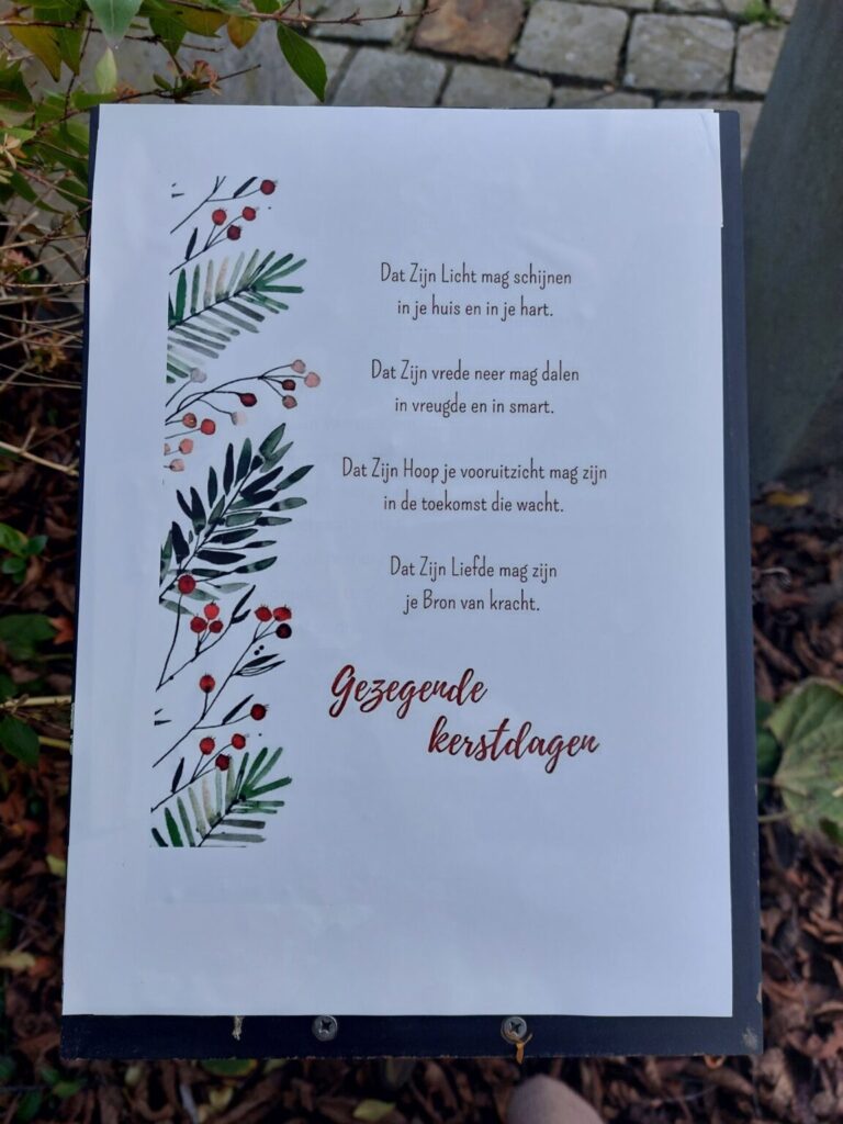 Mocht u met de feestdagen even een ommetje willen maken loopt u dan ook even door de Stiltetuin om de gedichten te lezen.