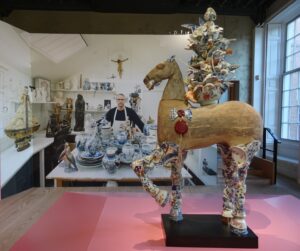 Eigenlijk kun je Bouke de Vries geen keramisch kunstenaar noemen: hij maakt de keramiek niet zelf, maar gebruikt scherven. Jarenlang werkte hij als restaurator oude keramiek, tot hij zich afvroeg: waarom is de Venus van Milo sterker zonder armen, terwijl een vaas waardeloos wordt als er maar een schilfer af is? Hij besloot het over een andere boeg te gooien en de kwetsbaarheid en gebrokenheid juist te vieren: hij herschept de scherven tot kunstwerken en voegt daarmee weer een nieuwe geschiedenis toe aan het materiaal. Daarbij laat hij zich leiden door hun schoonheid en eigenheid en de rijke keramiek-historie, maar gebruikt ook humor en speelt in op actuele thema’s.