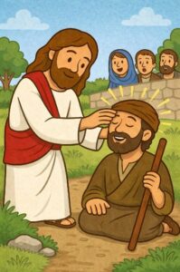 Bartimeüs was een man die niets kon zien, geen kleuren, geen gezichten, geen bloemen en geen zonlicht. Bartimeüs hoorde wel de stemmen en voetstappen van mensen om hem heen. Op een dag hoort Bartimeüs dat Jezus komt en hij wordt door Jezus geroepen en hij hoort Jezus’ stem. Bartimeüs gelooft in Jezus en dan gebeurt er een groot wonder.