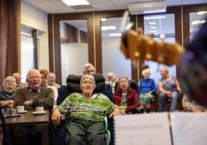 Toen iemand van de verpleging voorstelde om te gaan zingen, werd dit dankbaar opgepakt door verschillende mensen. Samen zongen we “De herdertjes” , “Stille Nacht” , “Midden in de winternacht” en nog veel meer kerstliedjes. Hierbij konden mijn schoonmoeder en de andere bewoners ineens grote delen van de tekst meezingen. Heel bijzonder!